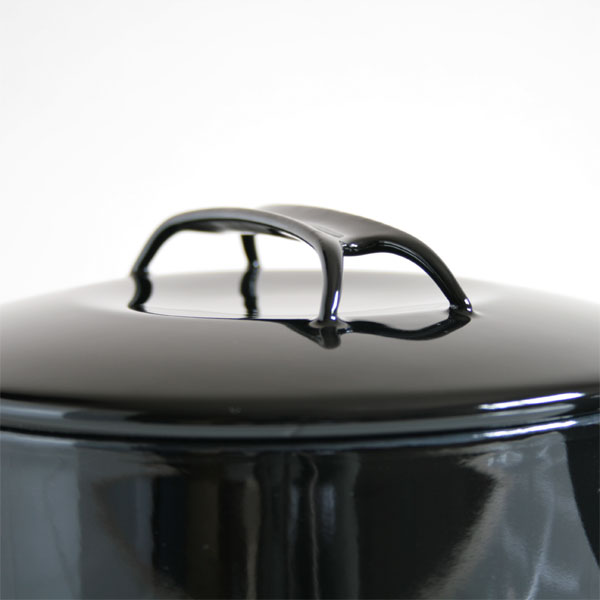 ふたの形と重みが中の蒸気を逃さないので、美味しいエキスをとじこめます。 取っ手部分の板厚は3.2mm。機能的でつかみやすく、使う人にやさしい形です。 対応熱源:電磁調理器100V200V、ハロゲンヒーター、電気プレート、オーブン、ガス、セラミックヒーター ※電子レンジには対応できません。 デザイナー:山田耕民(Komin Yamada) 1947年生まれ、サレジオ学園(育英高専)工業意匠科を経て、ヘンドリック神父(ベルギー人)の紹介により、意匠科助手として、千葉大学に入職。デザインコンセプト、モデリング等を学ぶ。グローバルナイフのデザインなどで世界的に評価されている。 NOMAKUは、ホーローだけでつくったシンプルな鍋です。木やプラスチックなど、別素材を使わないためホーローの強さと美しさがきわだつデザインが生まれ、使い勝手のよさと耐久性をとことん追及できました。 使い手と心を合わせ、本格的なスープや煮込み料理などさまざまなメニューに対応できることが大きな魅力です。 大切な人と鍋を囲み、食べるたのしさを分かち合っていただきたい。 それが、NOMAKUにこめた願いです。 |