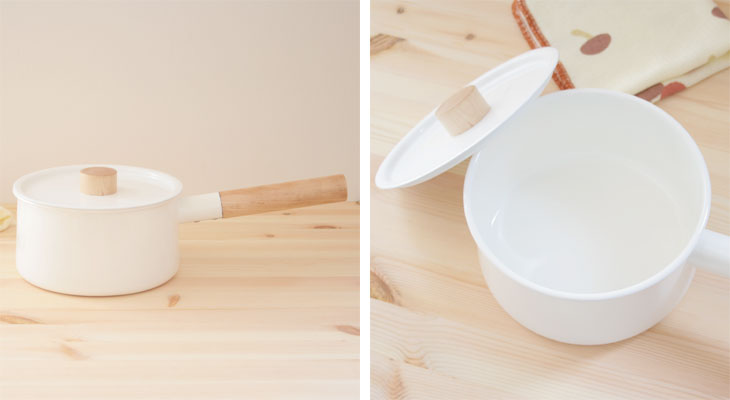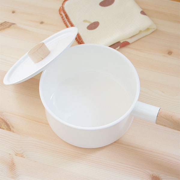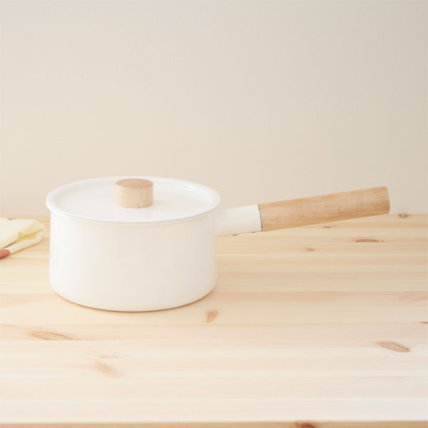 洗いやすい大きな開口、熱くならない大きな木の取っ手、熱を受けるための広い底。 シンプルなデザインながらも優れた機能性に満ちています。 毎日のお料理に出番の多い片手なべ。 kaicoの片手なべなら使い勝手もよく、キッチンにあるだけでオシャレでかわいいから嬉しいですね。 kaicoシリーズはオシャレなデザインだけではなく機能性にも優れているので、普段使いはもちろんプレゼントにしても喜ばれそうですよ。 ■kaicoシリーズ ホーローの良さ■ 鉄にガラス質を焼きつけることによって生まれるホーローは、熱伝導率が高く保温性に優れています。 ホーローは無機質だから、酸にもアルカリにも強く、また硬質のガラスでコーティングされているホーローの道具は、料理したあとのよごれや変色の影響をほとんど受けません。 摩擦に強く耐久性もあるので、いつまでも気持ちよくお使いいただけます。 表面がつるつると滑らかだから、よごれやキズがつきにくい。つまり、お手入れがとても簡単です。 いつまでも清潔さを保ち続けます。