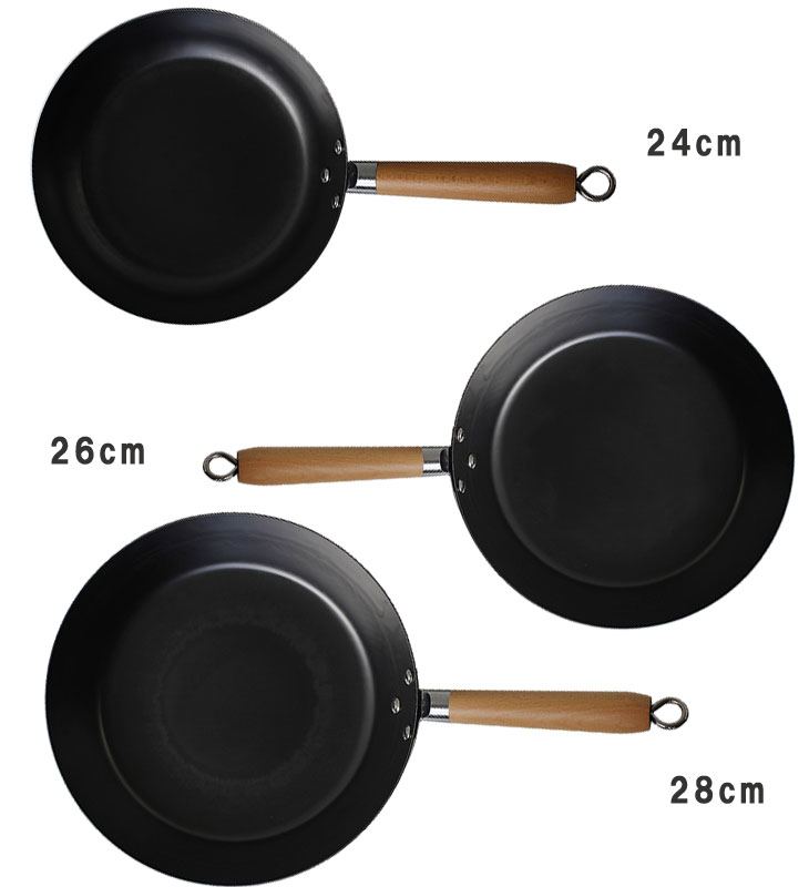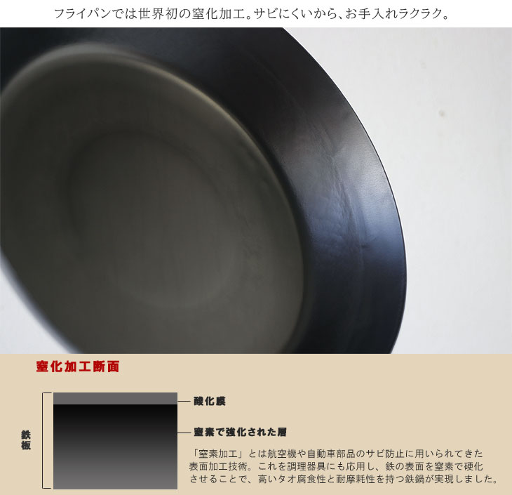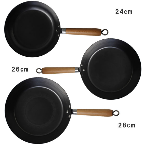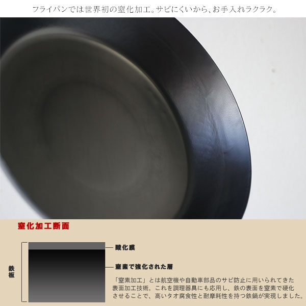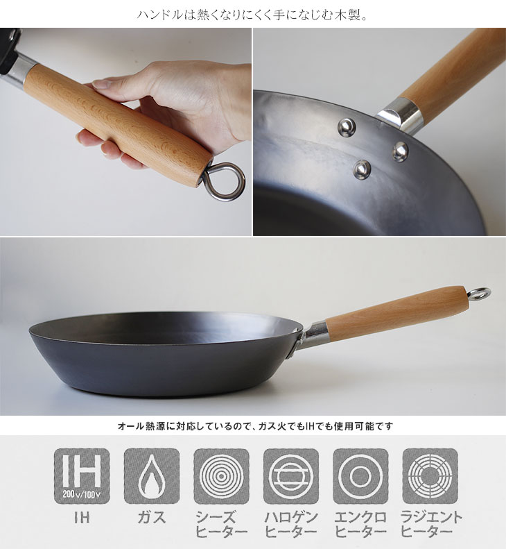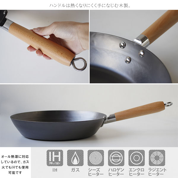 | 窒化加工を施しサビにくい!木製ハンドルの打出しフライパン |