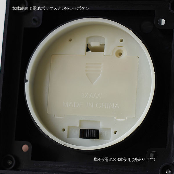 底面に電池ボックスとON/OFFボタンが付いています。 単4形電池3本を使用します。※電池は別売りです。 連続点灯時間は約120時間です。(使用状況や電池の状態により変動します。) ※LEDライトの取り換えはできません。 テーブルやラックに置いたり、上部の輪っかにフックやマクラメひも等を取り付け、ハンギングして飾ってもおしゃれです。 置いても吊るしても使えるのは、取っ手の付いたランタンならでは。 キャンドルを再現したLEDを見つめながらゆっくり流れる時間は、自然と心が穏やかになり癒されます。 普段のリラックスタイムにリビングやベッドルームに♪ また、クリスマスやハロウィンなどイベントやパーティの空間演出にもおすすめです!