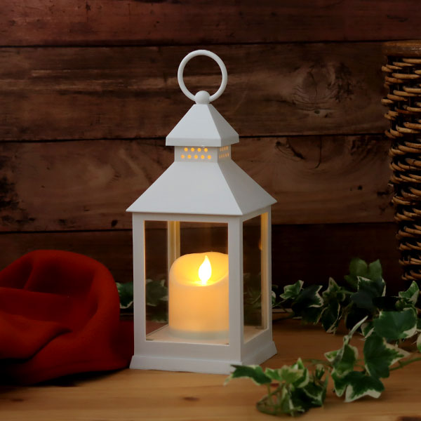 ブラック、ホワイトのカラーがインテリアのワンポイントになるかわいいフォルムのランタン♪ 狭いスペースにも置きやすいコンパクトなサイズです。 電磁石による磁力の反発で炎の揺らぎを再現しています。 炎の部分がゆらゆらと揺らめいて、本物のキャンドルのようです。 LEDで再現され火を使わないので、小さいお子様やペットが触れても安心です。 ※屋内での使用を前提に作られているので、屋外でのご使用はお避け下さい。 ※キャンドルではありませんので、火をつけないでください。