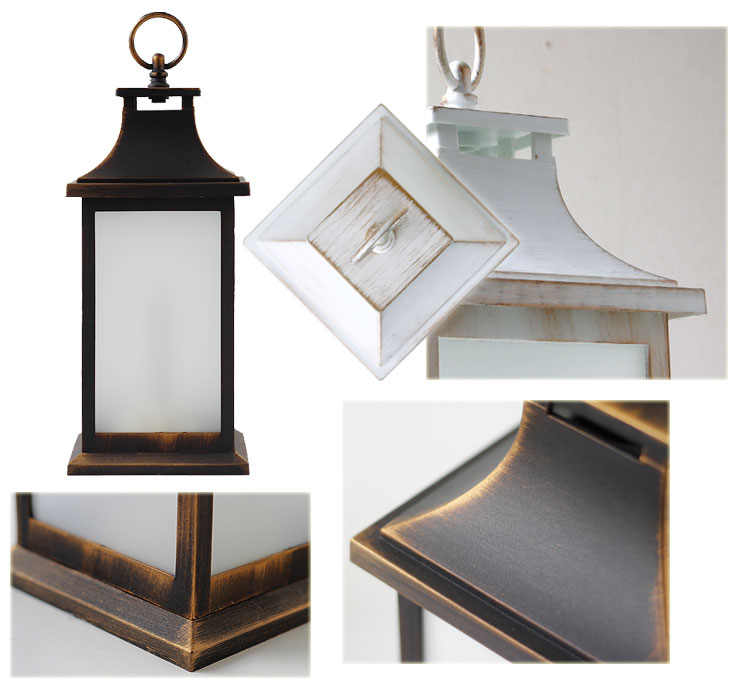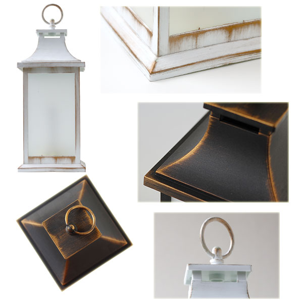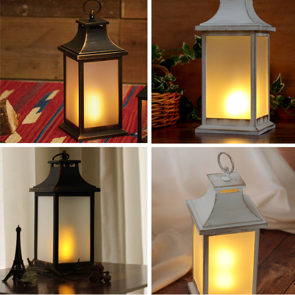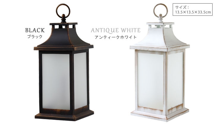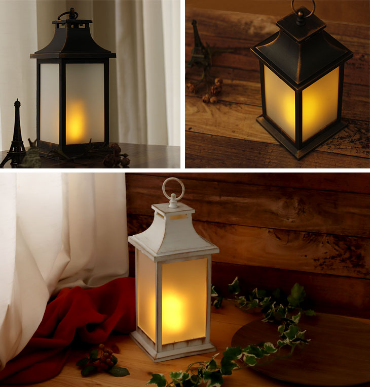 ブラックとアンティークホワイトの2カラーをご用意。 使い込んだヴィンテージのようなアンティーク加工がポイント♪ LEDライトを覆うフロストガラスでさらにランタンの雰囲気アップ! 炎はLEDで再現され火を使わないので、小さいお子様やペットが触れても安心です。 ※屋内での使用を前提に作られているので、屋外でのご使用はお避け下さい。