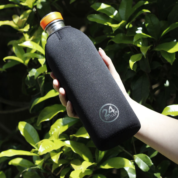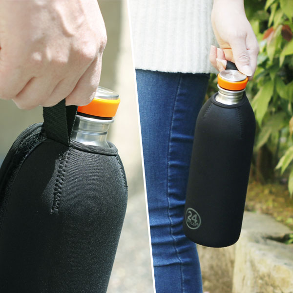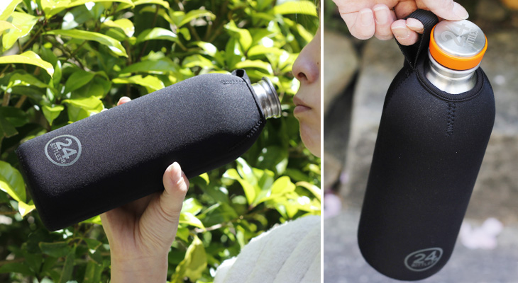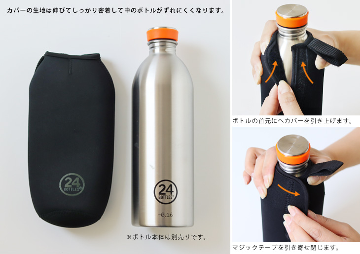 24BottlesのUrban Bottle(1.0L)専用のカバーです。 飲み口部分が隠れないように上部は空いています。 背面にあるマジックテープをとめて、ボトルをピッタリと包み込みます。