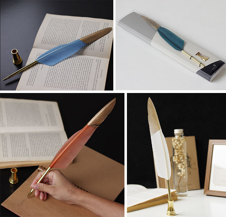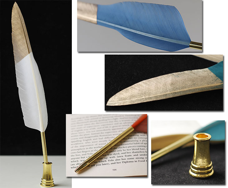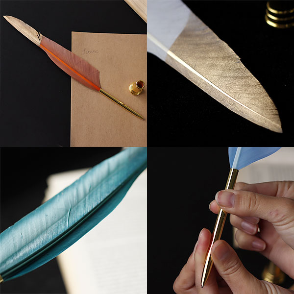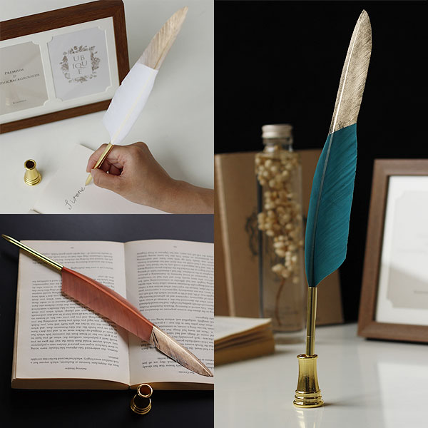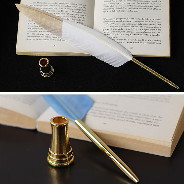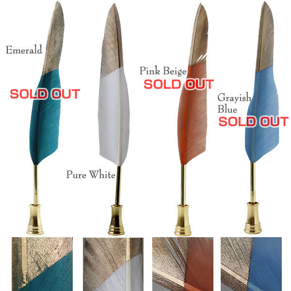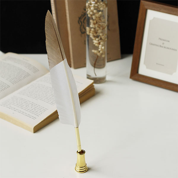 | ゴールド塗装のクラシカルな鳥の羽のスタンドボールペン |