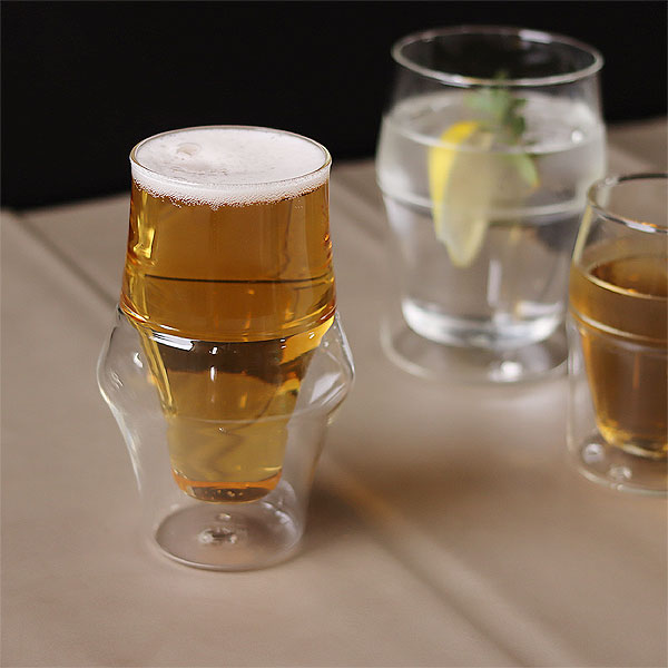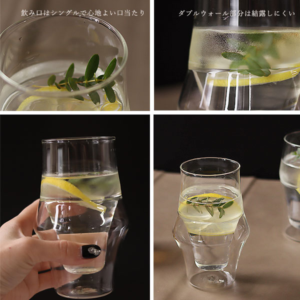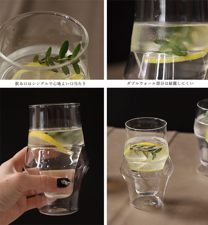 | 結露を防ぎ熱い飲み物も持ちやすいダブルウォールのグラス |