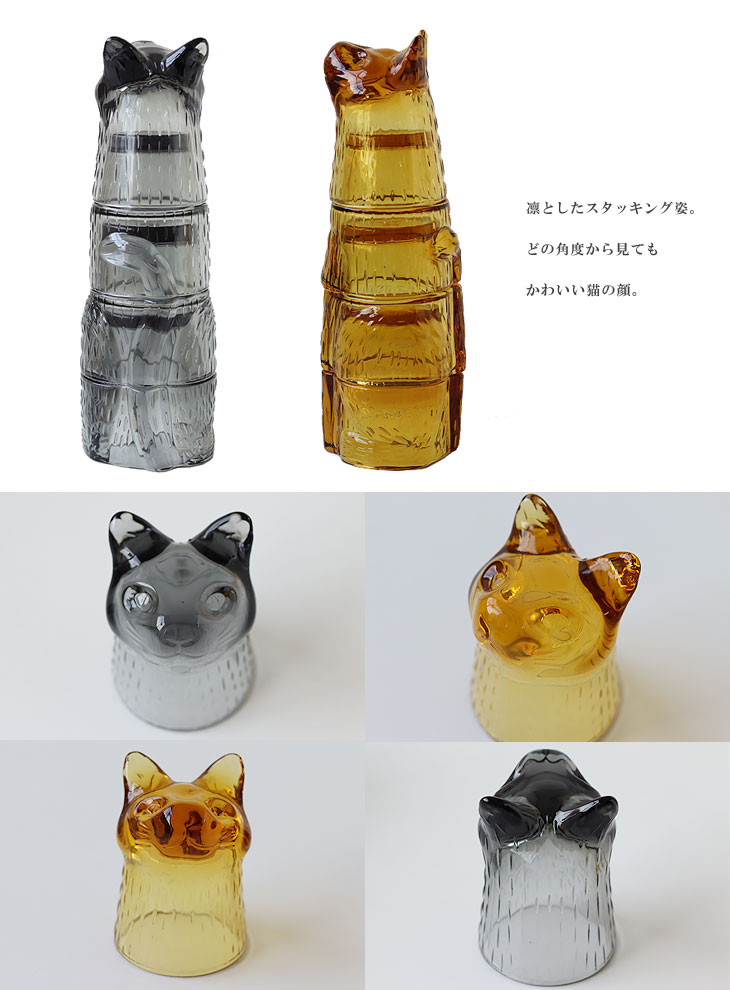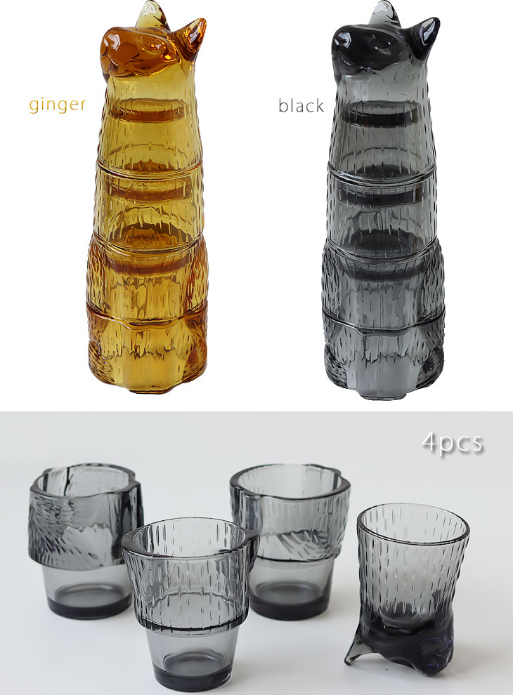 | 4つのグラスを積み重ねると猫モチーフになるスタッキンググラス |