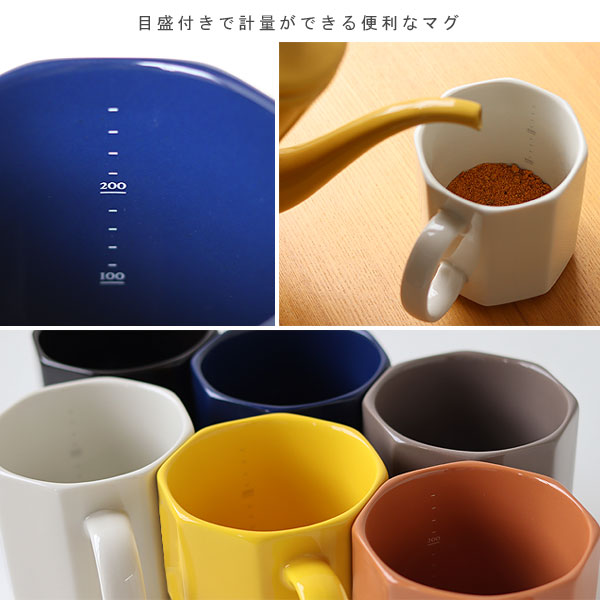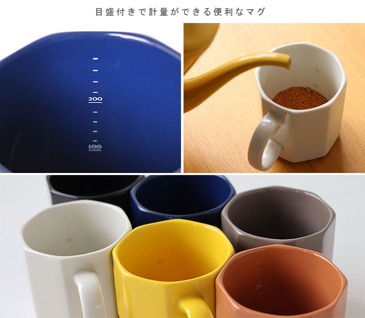 | 好みの濃さのドリンクを楽しめる目盛付きオクタゴンマグカップ |