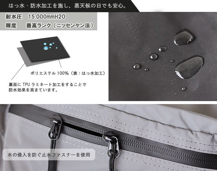 | 悪天候の日でも暗闇でも!防水/はっ水機能/視認性バッグ |