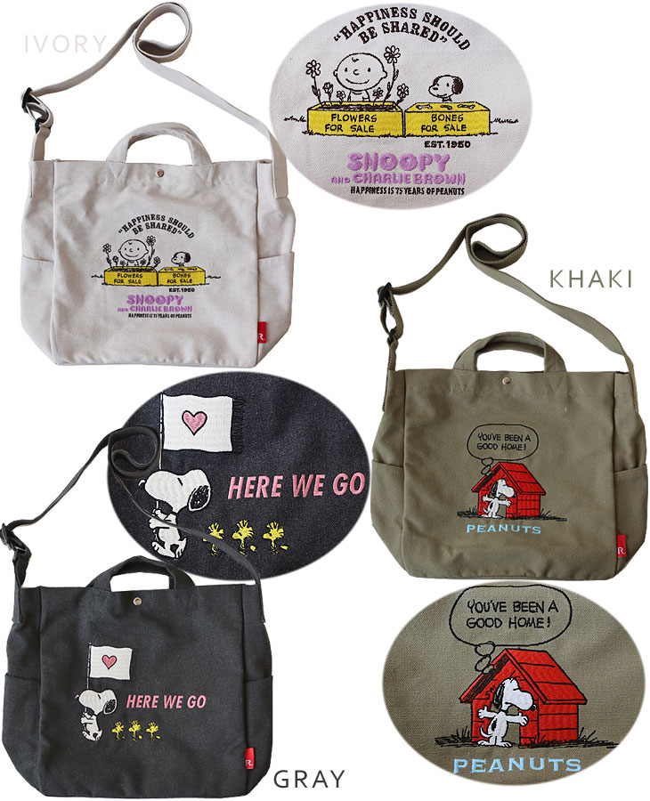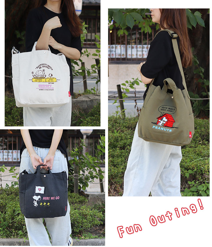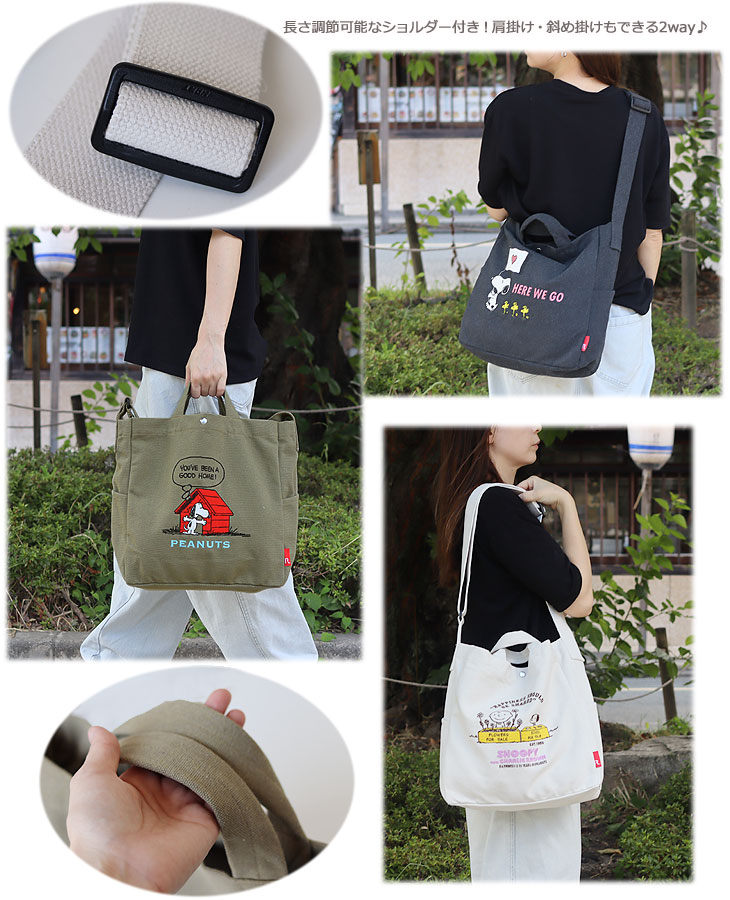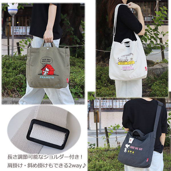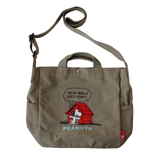 | リサイクルコットン使用のスヌーピー刺繍大きめ2WAYバッグ! |