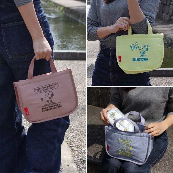 PEANUTSアイテムらしい、見てるだけで楽しくなるようなバッグです♪ バッグの内側にはEVAシートが施されていて、保冷剤を入れて使います。 毎日のお弁当にピッタリ♪ 2段のランチボックスやデザートだけでなく、350mlのペットボトルもすっぽりでとっても便利な保冷バッグなんです!