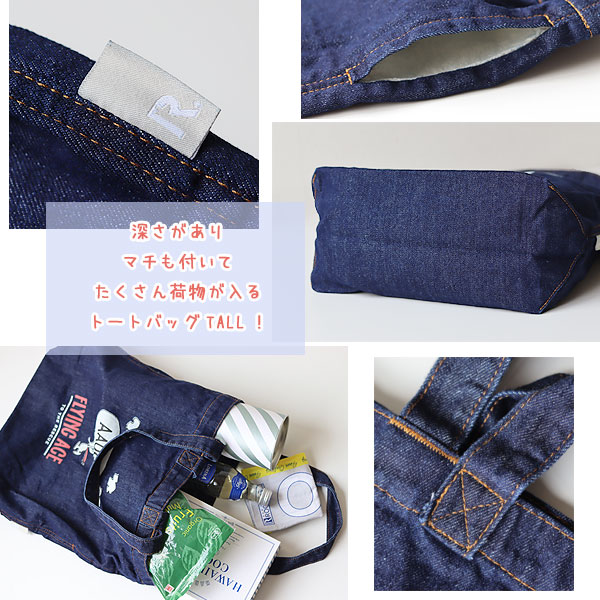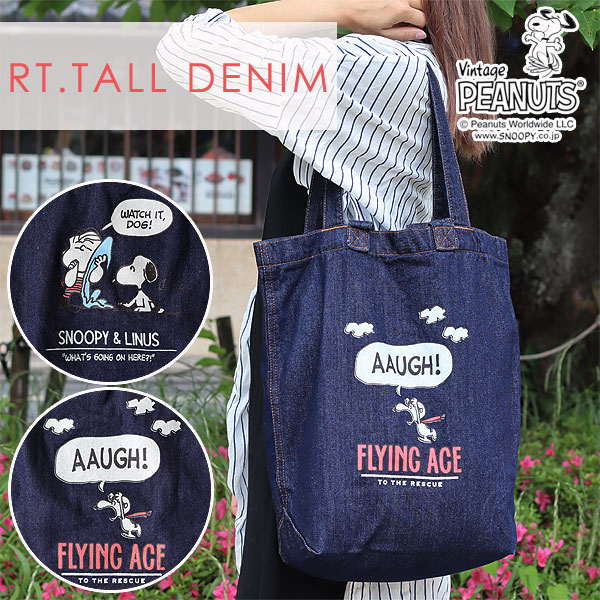 | 持ち手2種類付き!インディゴデニムの縦長SNOOPYバッグ |