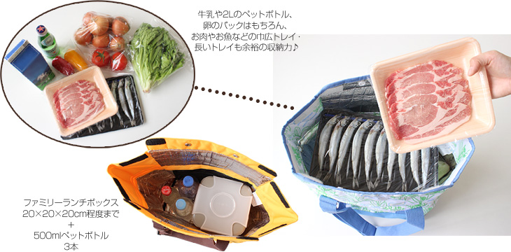 | 箱型・船型の2Way♪お買いものに便利な簡易保冷バッグ |