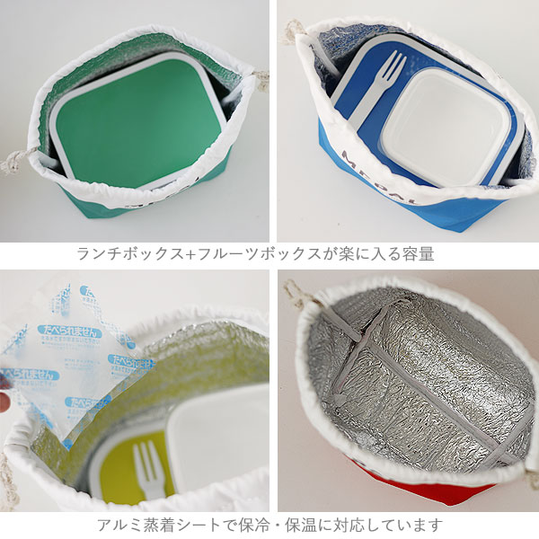 | バイカラーが楽しい簡易保冷・保温できるランチ巾着ポーチ |