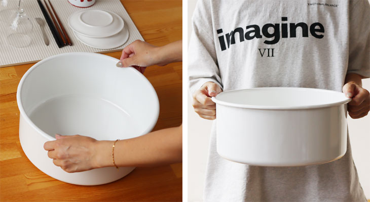 高さを変えて、より使いやすくなりました。 野田琺瑯の洗い桶は、食器・野菜洗い、大量のジャム、筍の茹で鍋等に最適です。