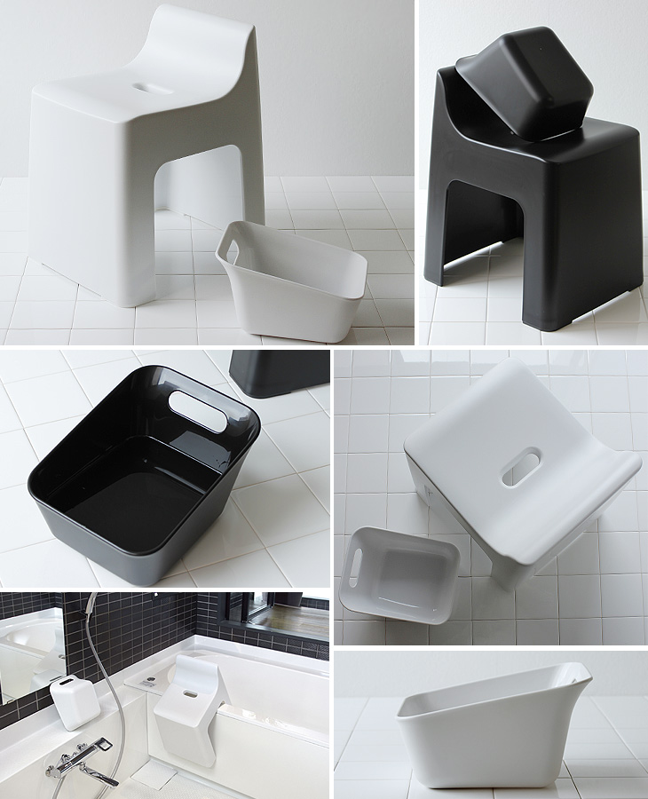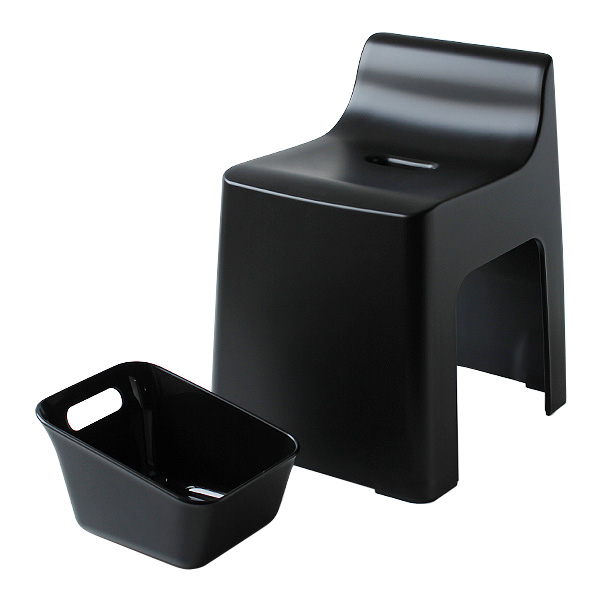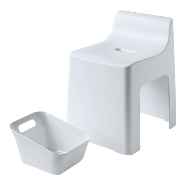 | 座面の高い風呂椅子とシャープなスクエア型洗面器のセット |