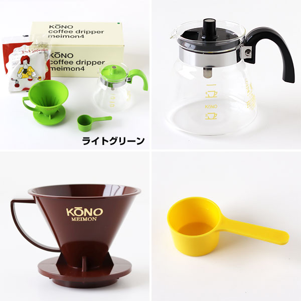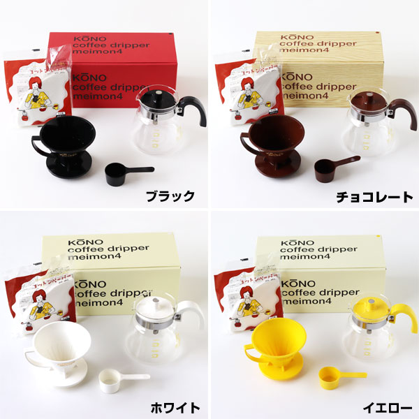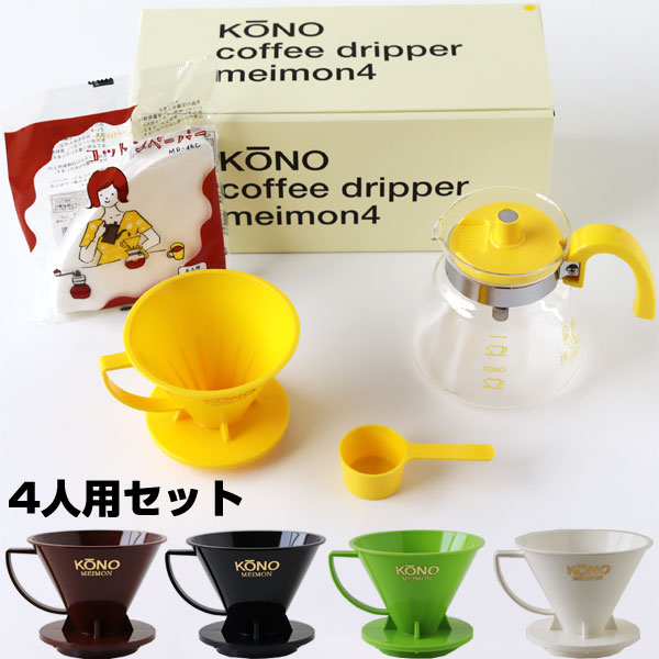 トップページ >> コーヒー用品 >> KONO式名門ドリッパー4人用セット カラーハンドル |