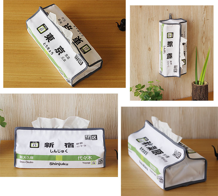 | 東京山手線駅名のティッシュボックスカバー |
