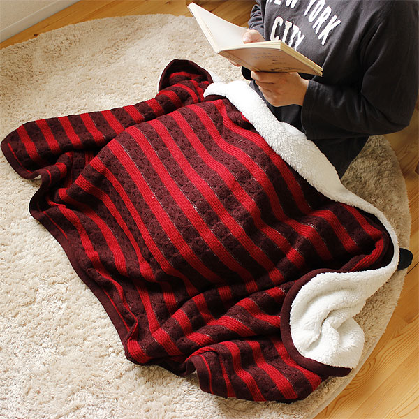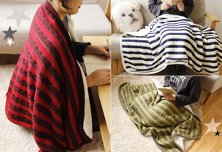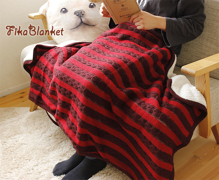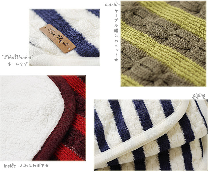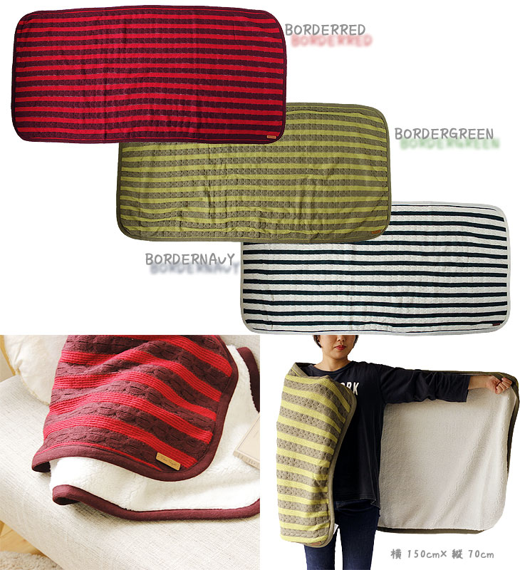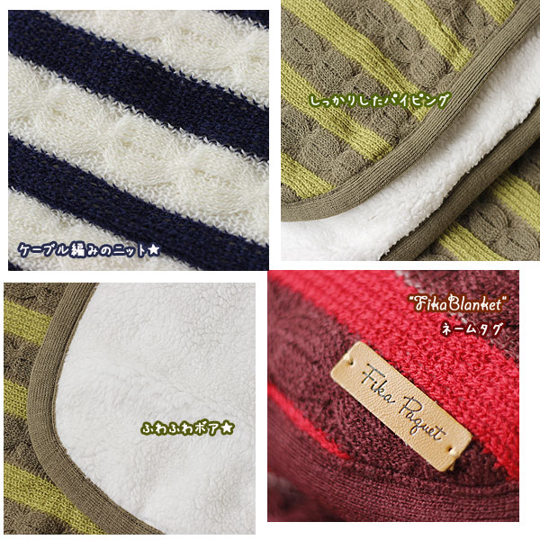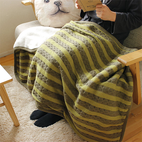 | ボーダー柄のおしゃれなケーブルニットひざ掛け150×70 |