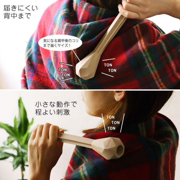 おしゃれなデザインのセルフで身体ケアできるアイテムです。 「トントントン」の動作で肩や背中の疲れをリセット! 大切な人の健康を考えた贈り物としてもおすすめです。 [お手入れ方法] 中性洗剤で洗ってください。洗った後は、水分を取ってから風通しのよい場所で陰干しにしてください。 [使用上の注意] ・お子様に与えないでください。また、お子様の手の届かない場所に保管してください。 ・医療目的のものではありません。用途以外に使用しないでください。 ・お肌の弱い方、幼児、アレルギー体質の方、および皮膚に以上のある方は使用しないでください。 ・同一箇所での長時間の使用はしないでください。 ・使用中、または使用後に気分が悪くなったり、しびれや激しい痛みを感じたり、赤み、はれ、かゆみなどの異常が現れた場合は使用を中止してください。しばらくしても症状が治まらない場合は、専門医に相談してください。 ・破損した場合は使用を中止してください。 ・本品は水に濡れると滑りやすくなります。入浴中などは使用しないでください。 ・材質の特性上、開封後に特有のにおいがすることがありますが、風通しの良い場所で干すと次第に和らぎます。 ・火気や暖房器具のそばに置かないでください。変形や破損の原因となります。 |