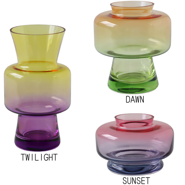 DAWN=夜明け、SUNSET=夕暮れ、TWILIGHT=黄昏時と、それぞれ名前から連想することのできるグラデーションカラーが特徴的です。 色展開によってそれぞれ異なる形もポイント。まるでオブジェのようなオシャレなデザインです。