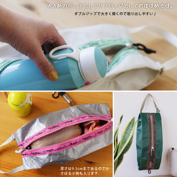 もちろん大き目のポーチとしてもご利用いただけます。 9.5cmと厚みがあり収納力は十分ありファスナーで閉じれるのでフラットなシューズも入ります。 旅行時の散策用のサブバッグとして、小分け用のポーチとしても活用いただけます。 いろいろなシーンで便利なサイズになっています。