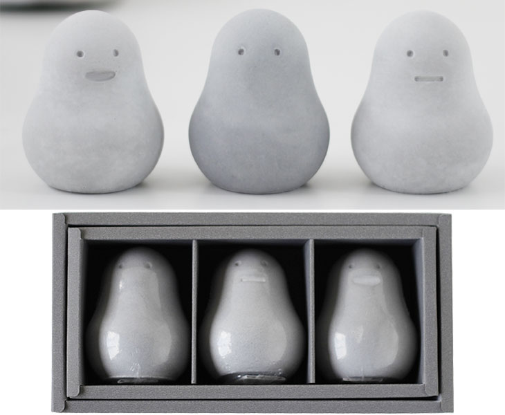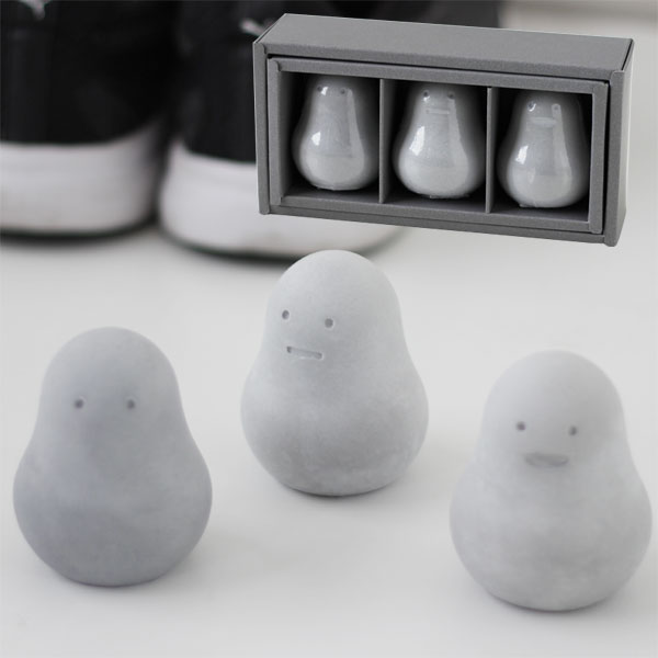 顔の表情は口無しと2種類の口ありがございますが、各1個ずつの3つセットとなります。 −使用上の注意− ・微量の粉が出てきますが、材質の特性上、自然に出てくるものですので品質上問題ございません。 ・吸湿、脱臭力には限りがあります。一定期間使用したら時々外に出して外気にさらし、乾燥させていただくと効果が戻ります。 ・素材の劣化につながりますので、長時間水に浸さないでください。 ・水洗いをした場合は、乾燥したように見えても内部に水分を保持してしますので、必ずよく乾燥させてからご使用ください。(夏場で丸一日が目安です。) ・有効期間は、使用環境により異なります。半年〜1年を目安に交換をおすすめします。 ・使用後はよく乾燥させてから保管してください。 ・幼児が口に入れないようにご注意ください。 |
