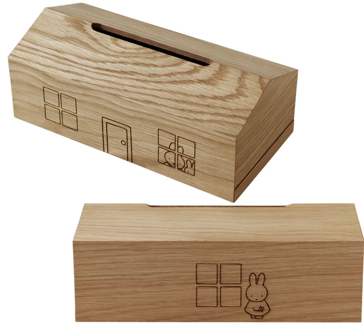 | ミッフィーのお家型、あたたかみのある木製のティッシュケース |
