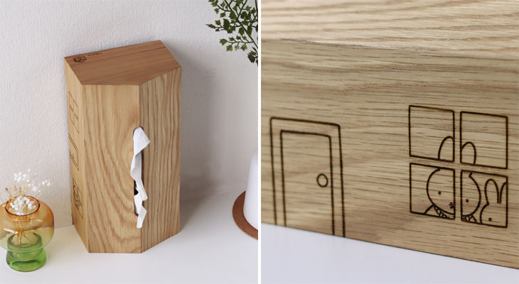 MDFにオーク素材を表面突板貼りし、木の風合いをお楽しみいただけるティッシュケースにしました。 リビングや子供部屋部屋。そこに置いてあるだけで可愛くて優しい存在感を発揮してくれるティッシュケースです♪