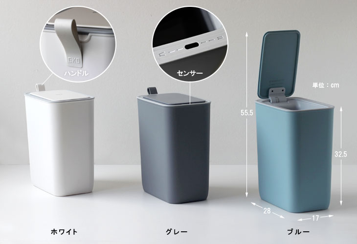 有名デザイナーを起用した斬新なデザインのモランディ センサーゴミ箱。 大きすぎず小さすぎない、使いやすい8Lです。 落ち着いた色味のホワイト/グレー/ブルーの3色は主張しすぎないのでインテリアに溶け込みます。