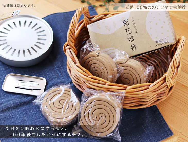 今日をしあわせにするモノ。100年後もしあわせにするモノ。 菊花線香は100年後の未来にも残したい安心・安全な商品です。 大切な家族、ご友人の健康を考えた贈り物としておすすめです。 [使用上の注意] ・一カ所に着火し、その他は絶対に火をつけないでください。異常燃焼の原因になります。 ・線香立ての先端部分や金属のうすいところで手などを切らないように十分注意してください。 ・線香立ては陶磁器か金属製の容器の上に置いて使用し、紙箱やプラスティックの容器など燃える危険のあるものは使用しないでください。 ・締め切った部屋で長時間使用せず、換気の良い場所で風上に置いて使用してください。 ・使用後の灰はそのつど捨ててください。残ったまま使用すると蓄熱や異常燃焼の原因になります。 ・アレルギー性質の人は使用に注意してください。 ・合成着色剤や染色剤、農薬類をしていないので、植物粉末の原料色のままです。 ・植物の収穫時期や乾燥・粉末状態により色合いが違いますが、商品への影響はありません。 |