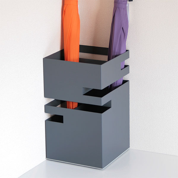 ●内側は9つに区切られているので、傘同士が重ならずに収納できます。 ●底には水受けトレーが付いています。溜まった雨水を捨てるときは、斜めに傾け、四隅から水を流してください。 ●置く方向によって違う表情が楽しめます。 ●コーナーにぴったりとフィットします。 |