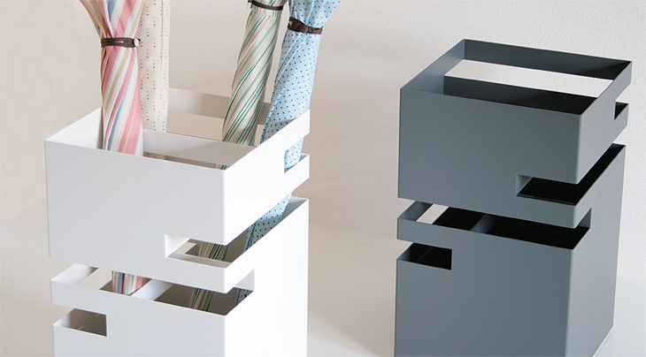 | 彫刻のような傘立て。9本の傘を収納可能。 |