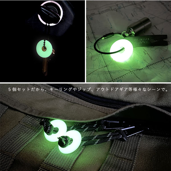 キーリングやバッグのジップに付けることで暗い状況でも素早く認識することができます。 アウトドアギアの目印、家や車の鍵、自転車など日常生活のさまざまなシーンで活躍します!
