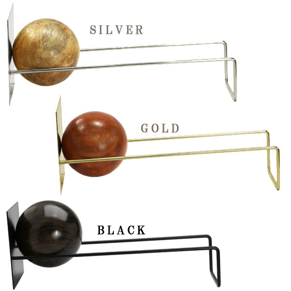 シルバーのスチールフレームにはナチュラル色のマンゴーウッドボール、ゴールドのスチールフレームにはブラウン色のマンゴーウッドボールがセット、ブラックのスチールフレームにはブラックブラウン色のマンゴーウッドボール。 スチールとウッドボールの組み合わせが、どんなインテリアにもマッチ。 他にはなかなかない、おしゃれなオブジェにしか見えないルックスです。 球体は天然木を使用しており木目や色、重量に多少個体差がございます。