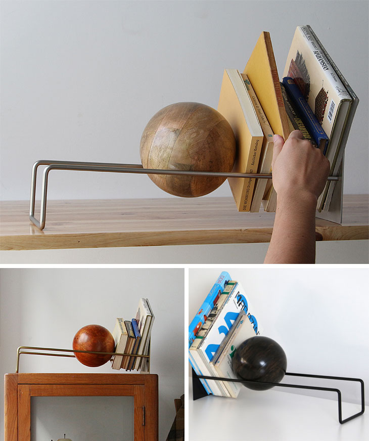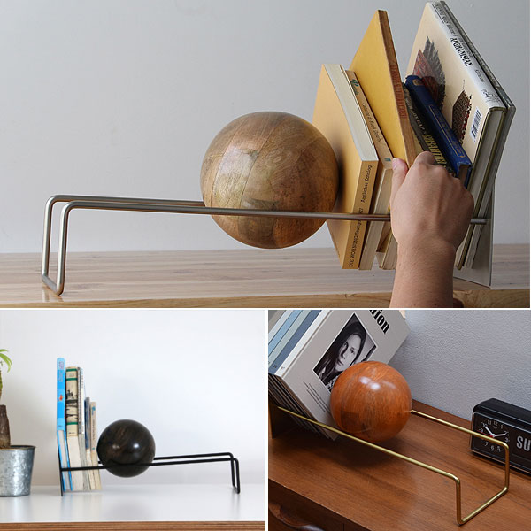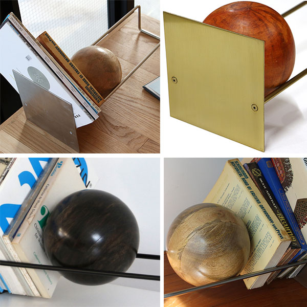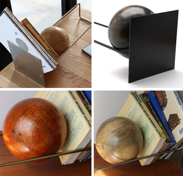 | スチールフレームとウッドボールを合わせたおしゃれブックエンド |
