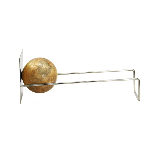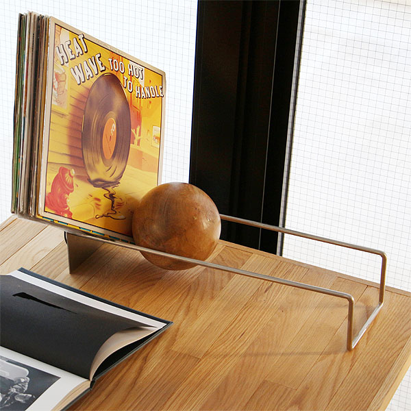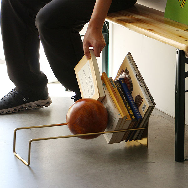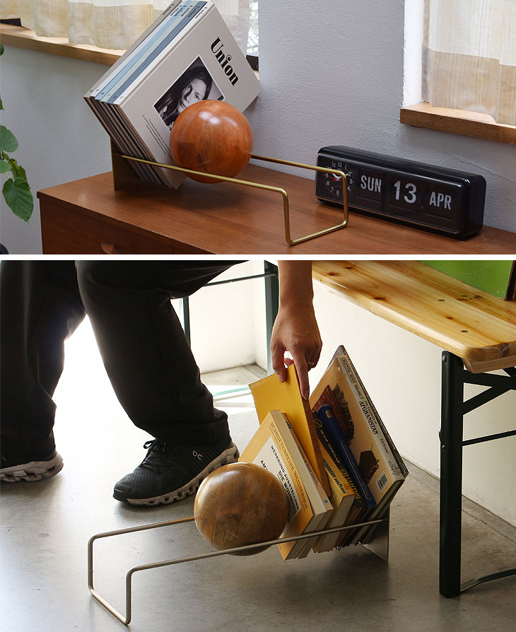 スロープを木製ボールがゆっくり動き、本やレコードなどを抑えてくれます。 収納というよりお気に入りの本、雑誌、レコードなどを見える場所に飾っておくようなオブジェとして。 スチールとマンゴーウッドボールの組み合わせがヴィンテージ感を出しています。 シンプル構造ですが、存在感のあるアイテムに仕上がっています。