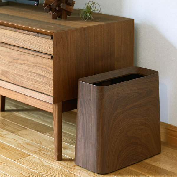 最近では地球上の唯一の生産者である樹木までもが絶滅危惧種として指定されつつあります。 「フェイクされたものを使う事」それが命を守りつなぐ道の選択肢の一つでもあします。 そのような森林保全をコンセプトに作られたゴミ箱。 ローズウッドは過剰な伐採のなか絶滅が危惧されred listに登録されている樹木で、その産地であるブラジル、東南アジアでは輸出が禁止され保護樹木となっています。 森林保全の選択肢の一つとして提案された商品となっています。 角のない丸いデザインがやさしいフォルムのスリムなダストボックス。 上品な木目柄でプリントされていますので、ナチュラルなインテリアに自然になじみます。