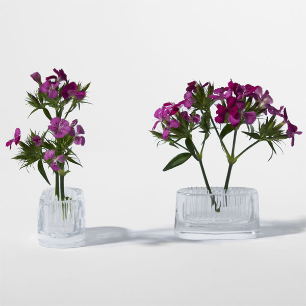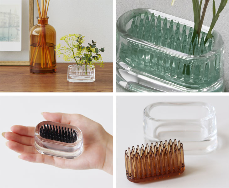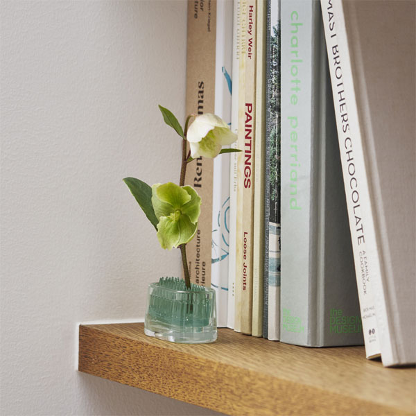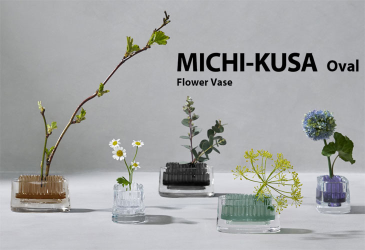 剣山は茎の太さに合わせて挿せるので、大小様々な草花から枝物まで幅広い植物を生けられます。 透明度の高いバリウムガラスはガラス職人によって、1つずつ手づくりされています。 透き通ったガラスに映る水と剣山が織りなす色合いが美しく花を引き立たせます。