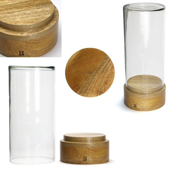 しっかり厚みのある土台にはシンプルに「H」の刻印が。 何を入れて飾ろうか悩む時間も楽しい。大切な宝物を飾ったり、季節のイベントごとに飾るものを変えるのもいいですね。 ◆ご了承いただきたいこと◆ ・ハンドメイド品の為、サイズやガラスの厚み、重量などに個体差ございます。 ・天然木を使用している為、節や木目、色味に個体差がございます。 ・生産工程上、ガラス部分への横筋や小さな気泡、表面や底部分の歪みや微細なキズ、欠け、擦れ、汚れ、粒状のものが見られることがあります。 ・天然木を貼り合わせる際の接着剤や補修部が見られることがありますが生産工程上起こり得るものであり、製品不良ではございません。 ・ガラス天面の厚みに個体差がございます。内寸の記載をしておりますが、記載サイズよりも若干高さが低くなる場合もございますので予めご了承ください。 ・食品を置く場合は、土台に油等が染みる恐れがございますのでキッチンペーパーなどを敷いてから載せてください。