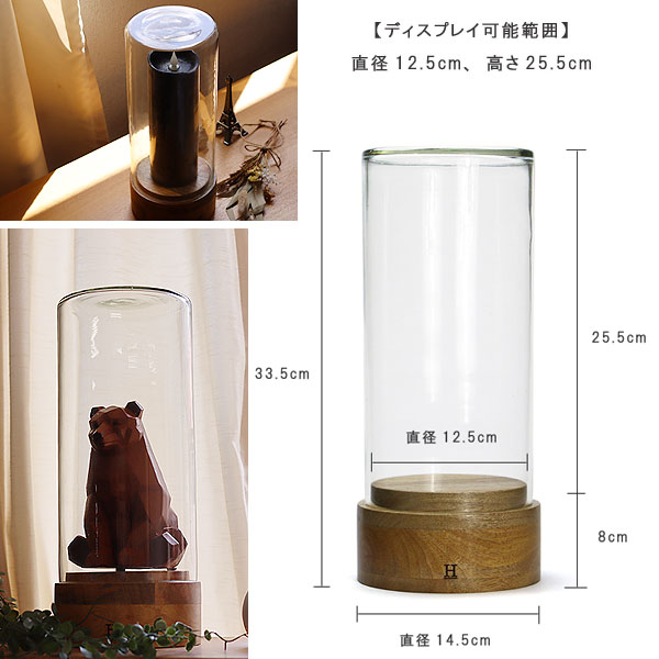 マンゴーウッドの天然木を土台に合わせたガラスディスプレイケース。 このエレガントなディスプレイケースが、お部屋の雰囲気を一層引き立ててくれます。 中に入れるものを周りの装飾品より目立たせて演出できるように、厚みのある土台に仕上げました。 お気に入りのアイテムを美しく演出し、ほこりをかぶることなく保管できるのも嬉しいポイント。 土台にしっかりとした重みがあり、一方でガラスは軽量に作られています。 ![]() ドライフラワーやおやつ、お気に入りのアクセサリーなどを飾って、特別な雰囲気のあるディスプレイをお楽しみください。 高さがあるので、背の高いオブジェやキャンドルを入れても◎ 【ディスプレイ可能範囲】 直径12.5cm、高さ25.5cmまで ※ガラスドーム内に入れられるもののサイズは上記サイズ以内となりますが、ハンドメイド品の為、ガラス天面の厚みに個体差がございます。上記サイズより若干高さが低くなる場合がございますので予めご了承ください。 お部屋やショップ、どこに置いても様になるインテリアオブジェです。 心くすぐる日用品。より快適なカタチ、かゆいところに手が届くようなアイデア。性別や年齢を問わず、日々を軽やかに楽しむ人の生活をアップデートさせるアイテムです。