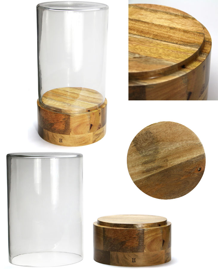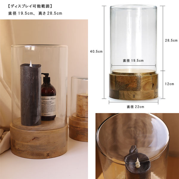 しっかり厚みのある土台にはシンプルに「H」の刻印が。 何を入れて飾ろうか悩む時間も楽しい。大切な宝物を飾ったり、季節のイベントごとに飾るものを変えるのもいいですね。 ◆ご了承いただきたいこと◆ ・ハンドメイド品の為、サイズやガラスの厚み、重量などに個体差ございます。 ・天然木を使用している為、節や木目、色味に個体差がございます。 ・生産工程上、ガラス部分への横筋や小さな気泡、表面や底部分の歪みや微細なキズ、欠け、擦れ、汚れ、粒状のものが見られることがあります。 ・天然木を貼り合わせる際の接着剤や補修部が見られることがありますが生産工程上起こり得るものであり、製品不良ではございません。 ・ガラス天面の厚みに個体差がございます。内寸の記載をしておりますが、記載サイズよりも若干高さが低くなる場合もございますので予めご了承ください。 ・食品を置く場合は、土台に油等が染みる恐れがございますのでキッチンペーパーなどを敷いてから載せてください。 ![]() マンゴーウッドの天然木を土台に合わせたガラスディスプレイケース。 このエレガントなディスプレイケースが、お部屋の雰囲気を一層引き立ててくれます。 中に入れるものを周りの装飾品より目立たせて演出できるように、厚みのある土台に仕上げました。 お気に入りのアイテムを美しく演出し、ほこりをかぶることなく保管できるのも嬉しいポイント。 土台にしっかりとした重みがあり、一方でガラスは軽量に作られています。 ![]() ドライフラワーやおやつ、お気に入りのアクセサリーなどを飾って、特別な雰囲気のあるディスプレイをお楽しみください。 大き目なサイズなので、複数のアイテムを入れて飾っても◎ 【ディスプレイ可能範囲】 直径19.5cm、高さ28.5cmまで ※ガラスドーム内に入れられるもののサイズは上記サイズ以内となりますが、ハンドメイド品の為、ガラス天面の厚みに個体差がございます。上記サイズより若干高さが低くなる場合がございますので予めご了承ください。 お部屋やショップ、どこに置いても様になるインテリアオブジェです。 心くすぐる日用品。より快適なカタチ、かゆいところに手が届くようなアイデア。性別や年齢を問わず、日々を軽やかに楽しむ人の生活をアップデートさせるアイテムです。