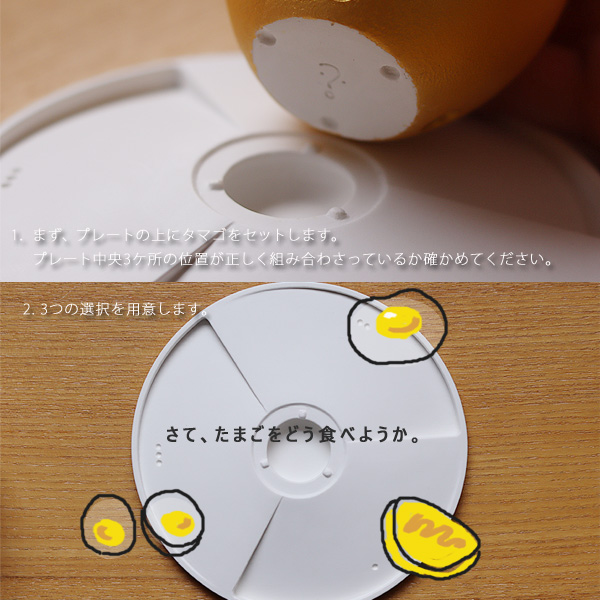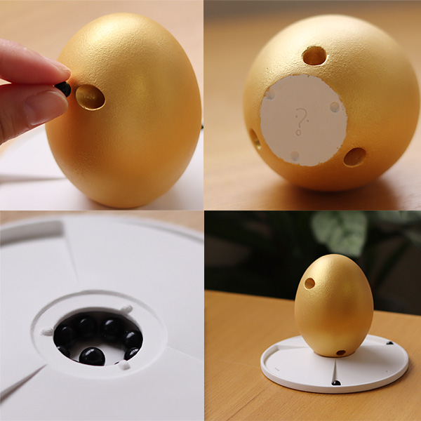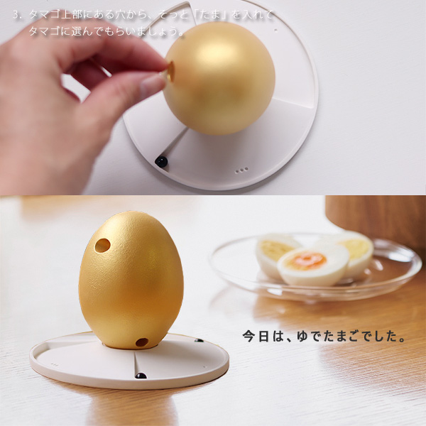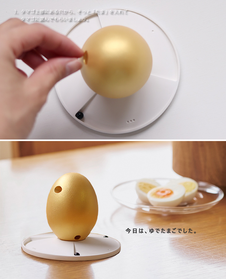 | 3つの選択肢を金のたまごに決めてもらうユニークな装置! |