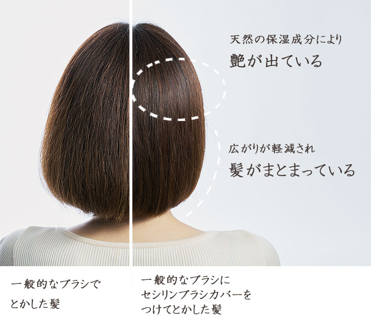 | 絹由来のヘアケア成分「セリシン」を含んだブラシカバー |
