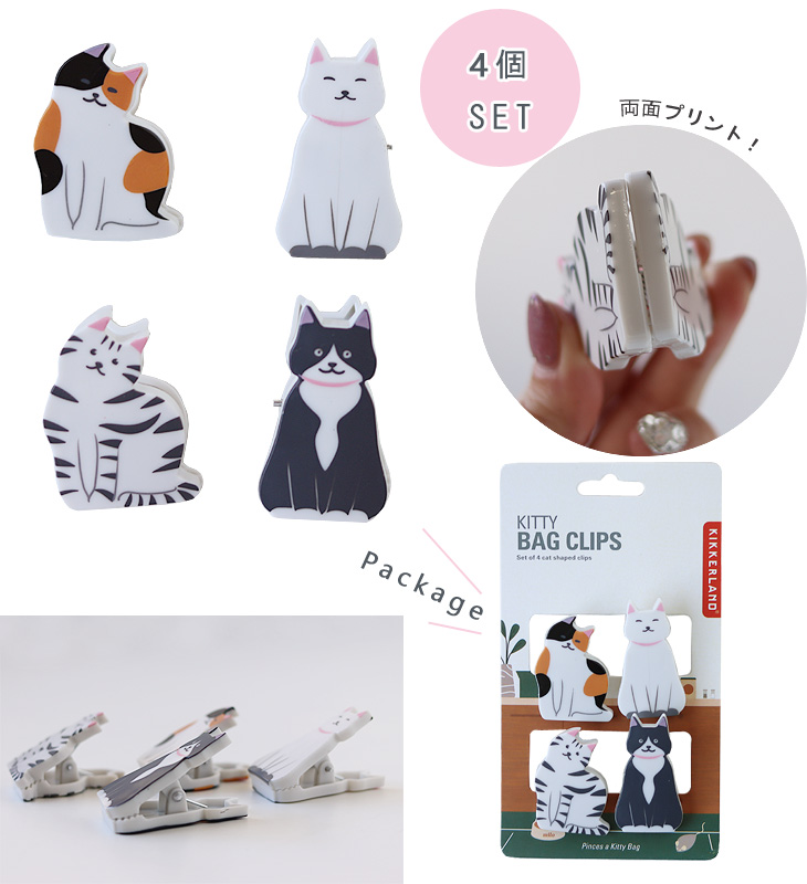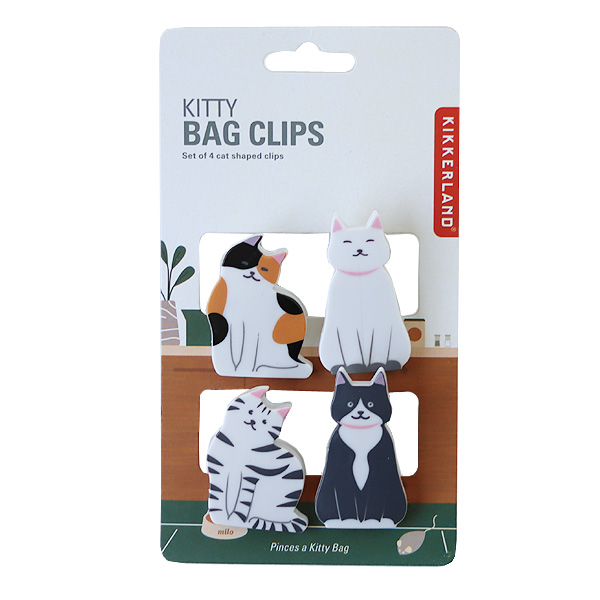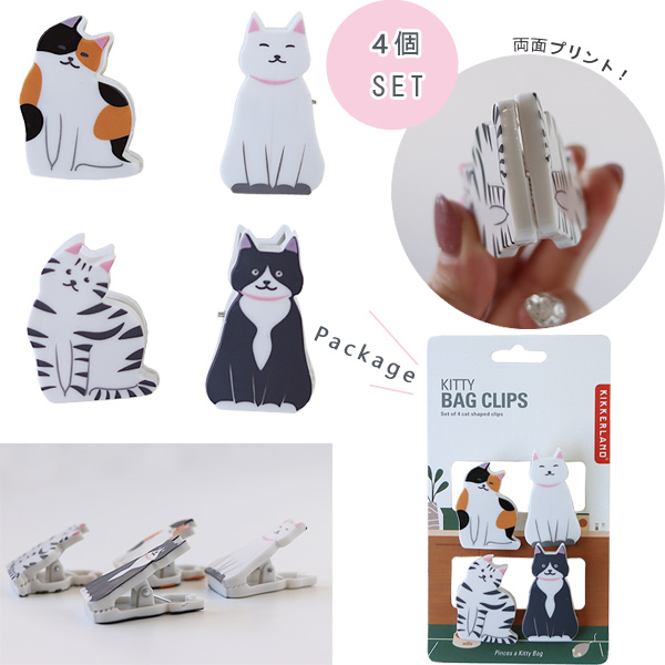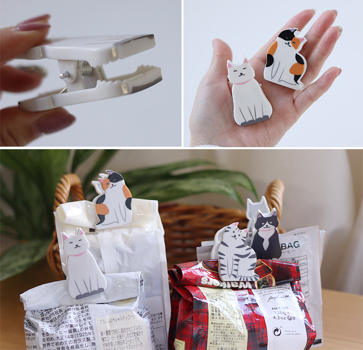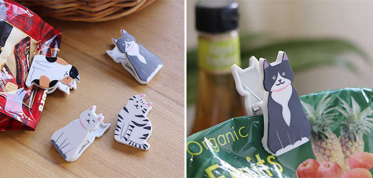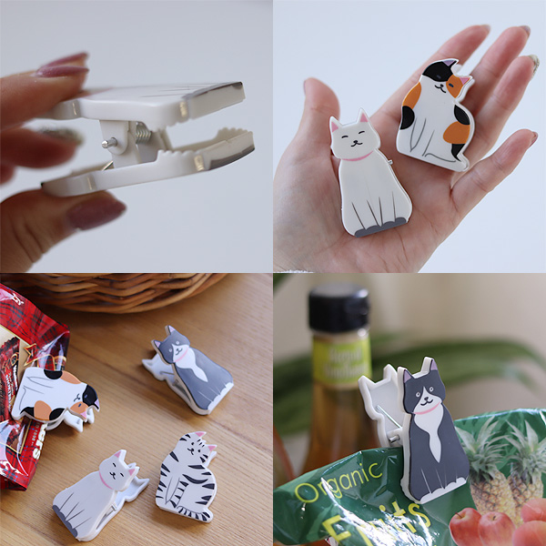 | 食材やお菓子の袋を留める4匹の猫のバッグクリップセット |