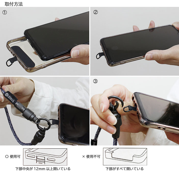 ・スマートフォン本体だけでは使用できません。スマホケースと併せてご使用ください。 ・本製品にスマホケースは付属しません。 ・耐荷重を超えて使用しないでください。耐荷重はテストの実験値となり、保証することはできません。 ・本製品を装着した状態で強く引っ張ったり振り回したりすると、破損やスマートフォン本体が落下する恐れがあります。絶対におやめください。 ・キャップ取り付け時は緩まないようにしっかり回してください。緩んだまま使用するとスマートフォン本体が落下する恐れがありますので必ず締めてご使用ください。 ・自動車や自転車の運転中や、その他乗り物遊びの際に使用することは、思わぬ事故につながるため絶対におやめください。 ・本製品を使用したまま、歩きながらのスマートフォンのご使用はお控えください。 ・雨や汗による濡れた状態での使用は、色落ちや色移りする恐れがありますので予めご了承ください。 ・使用するスマホケースの形状によってはストラップシートを使用できない場合があります。また、充電ケーブルがささらない場合があります。その際は充電時に製品を外してください。 ・変形や劣化の原因になりますので、直射日光の当たる場所、高温多湿の場所や火気の近くでの保管はおやめください。 ・本製品を使用し発生したトラブル、事故などにつきましては一切の責任を負いかねますので予めご了承ください。 ・小さいお子様の手の届かないところに保管してください。 ・安全のため使用するときに、他のものにぶつけたり、巻き込んだり、引っ掛けたりしないようにご注意ください。 ・素材表面は傷つきやすいので、鋭利なものやザラザラしたものとの摩擦にはご注意ください。 ・本製品の使用により、肌に異常があらわれた場合は、使用を中止し医師にご相談ください。 ・洗濯はお避けください。汚れた際は、水を含ませ固く絞った布などで拭き取ってください。その際に洗剤・漂白剤・シンナー・ベンジンなどの薬品は、色落ち・変形の原因となりますので、ご使用はお避け下さい。 ・本製品はスマートフォン専用です。タブレットには使用できません。本来の用途以外のご使用はおやめください。(充電・データ通信機能を除く) ・経年劣化のため強度が変わる可能性がございます。 ・本製品は完全に落下を防止するものではありません。 ・金具部分に指や物を挟まないようにご注意ください。 ・すべての機器での動作を保証するものではありません。 ・ご使用になる機器が対応であることをご確認ください。 ・ケーブルを抜き差しする際は、必ずコネクタ部分を持ってください。 ・本製品を使用したことによるデータやプログラムが消失・機器の破損等に関して一切の責任を負いませんので予めご了承ください。 ・データ通信料はパソコン対携帯端末のようにホスト(親:パソコン)デバイス(子:スマートフォン等)の関係でしか動作しません。スマートフォンをホスト(親)にしてUSB機器(USBメモリやHDD・SSDなどあらゆるUSBデバイス)との通信はできません。 ・スマートフォンの画面がロックされている状態では、データ通信ができない場合があります。 ・端末により充電可能ワット数は異なります。例:iphoneとipadではバッテリーの容量やサイズ・消費電力が違うため、入力量(W数A数)が異なります。 |