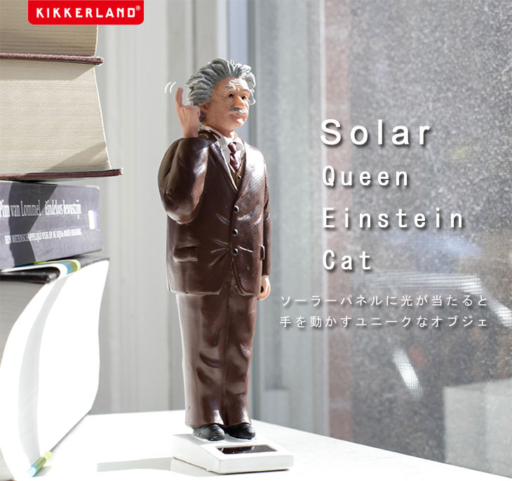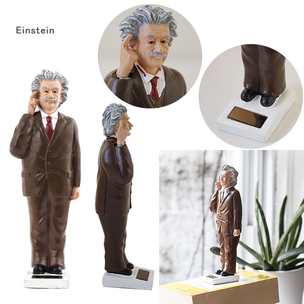 ソーラーパネルに太陽光があたると、何かを考え続けるアインシュタイン。