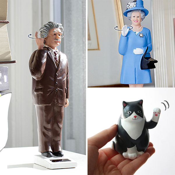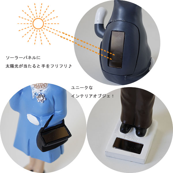 | ソーラーパネルに太陽光が当たると手を振るユニークオブジェ |
