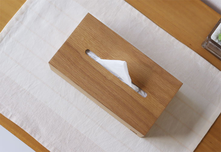 ティッシュボックスが、まるで木製の家具のような佇まいに。 シンプルに木の温もりを味わっていただける商品に仕上がっています。 どこの家庭にも必要な「ティシューペーパーボックス」を、その人やその部屋のインテリアに合うようなデザインで覆ってしまいましょう、という発想から「tente」が誕生しました。 生活感あふれる「ティシューペーパーボックス」を、この「tente」で覆ってしまうだけで、お部屋の印象はガラリと変わるでしょう。