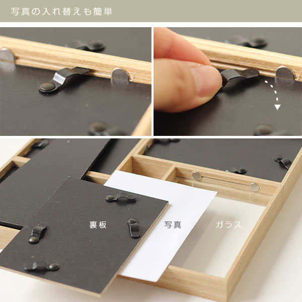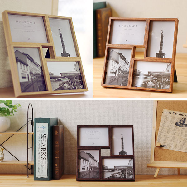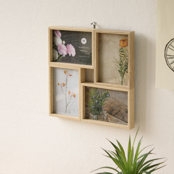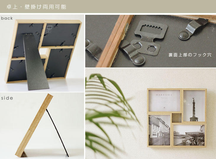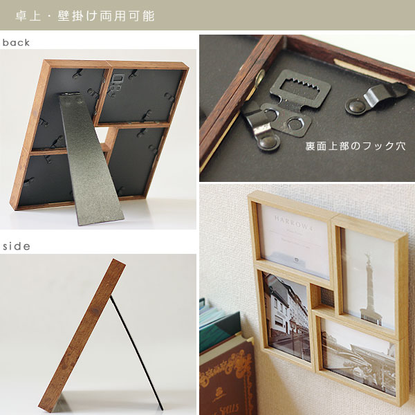 | 卓上壁掛け両用♪4窓のシンプルな木製フォトフレーム |