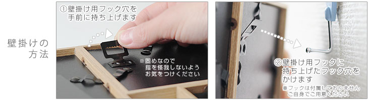 裏面上部にあるフック穴を使えば壁掛けに利用することも可能です。 見た目がスッキリしているのでお部屋の景観を損ねることもありません。リビングに、お手洗いに、玄関に…お好きな場所に飾ってみてください。